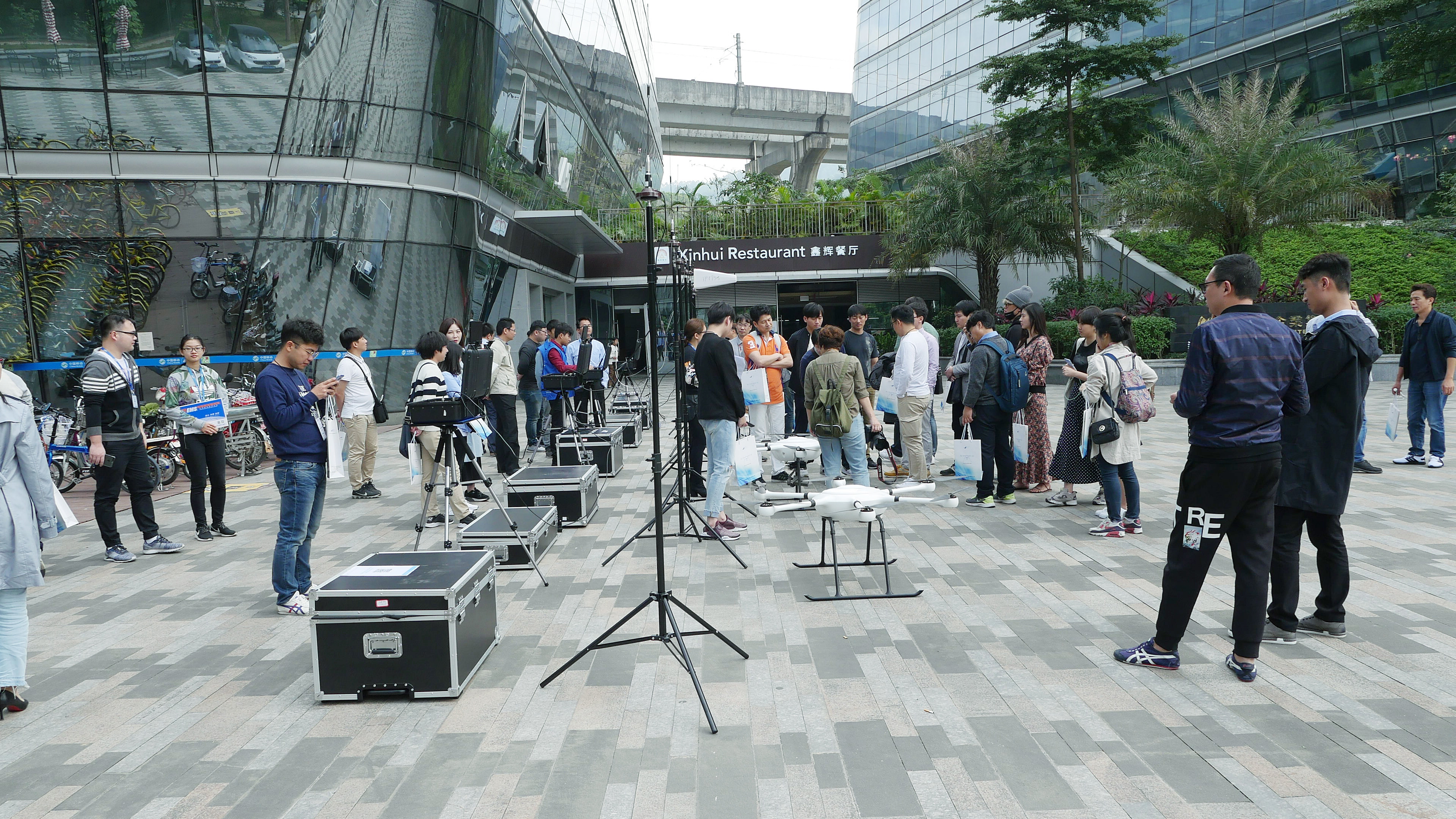交流會分兩個部分進行,首先在智園A5棟廣場進行試飛演示,其中智璟科技給來訪人員展示了T60V1、T60V2等型號的4臺無人機,并且分別搭載了30倍高清相機、喇叭等掛載。現(xiàn)場的無人機飛行演示深深吸引了前來造訪的考察團,他們紛紛拿出自己的手機和相機進行拍攝,并不時的發(fā)出贊嘆聲。同時,智璟科技代表通過專業(yè)的解說為大家答疑解惑。