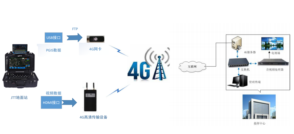 無人機可以把偵察到的現場實時狀態通過4G數據傳輸與通信系統將數據同步傳回后方指揮部,有利于中心工作人員第一時間了解全部的現場狀況。使指揮決策更加高效、專業、準確。