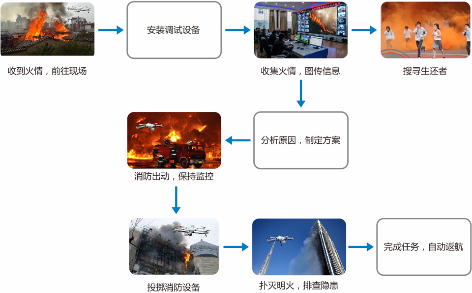 1、降低環境因素影響,能最快速的趕到現場收集信息以及通過搭載設備有效實現救災和救援的效果;