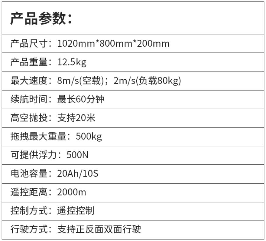 R2水上救援機器人技術參數: