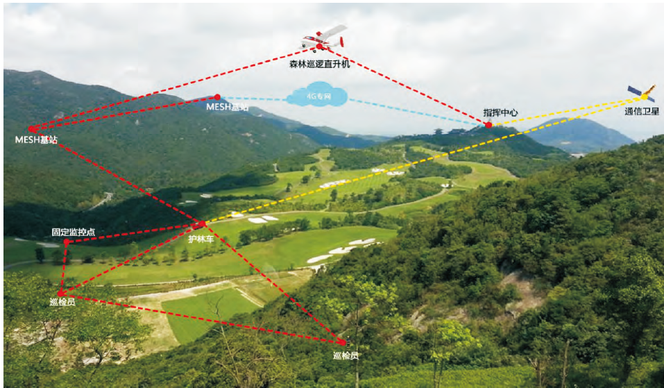 森林防火應(yīng)急救援通信系統(tǒng),利?先進(jìn)的MESH?組?設(shè)備,將適量的遠(yuǎn)距離MESH基站安裝在瞭望塔上,配合護(hù)林?載MESH、森林巡邏直升機(jī)機(jī)載MESH、護(hù)林巡檢員單兵MESH等,建??張森林防?專??線傳輸監(jiān)控?,將林區(qū)實(shí)視頻數(shù)據(jù),環(huán)境數(shù)據(jù)等傳給林區(qū)調(diào)度指揮中?,形成對(duì)整個(gè)林區(qū)的實(shí)時(shí)監(jiān)測(cè)監(jiān)控,做到提前預(yù)測(cè),提前防范,提前?動(dòng)。