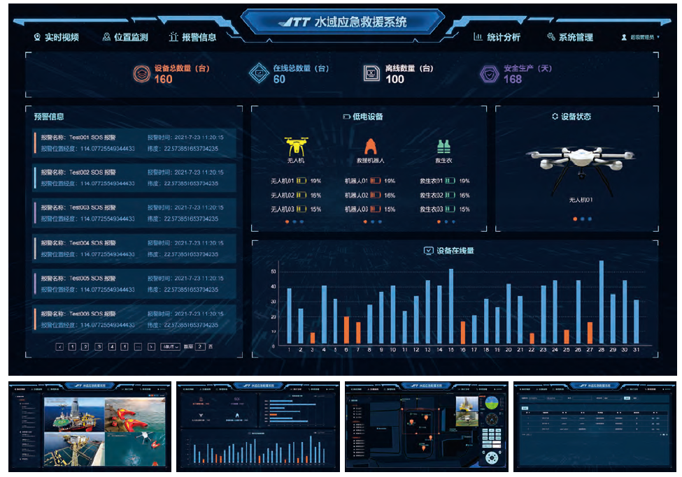 ?域應(yīng)急救援系統(tǒng)采?C/S、B/S混合式、多層系統(tǒng)架構(gòu),將?域應(yīng)急救援系統(tǒng)(空中巡查系統(tǒng),?域救援系統(tǒng),作業(yè)平臺(tái)AI安全預(yù)警系統(tǒng),救援?員防溺?監(jiān)測(cè)系統(tǒng)等)、報(bào)警聯(lián)動(dòng)等全部融合形成統(tǒng)?的平臺(tái)系統(tǒng),滿?了?域的應(yīng)急救援需求,??降低了系統(tǒng)使?難度、管理效率顯著提升。