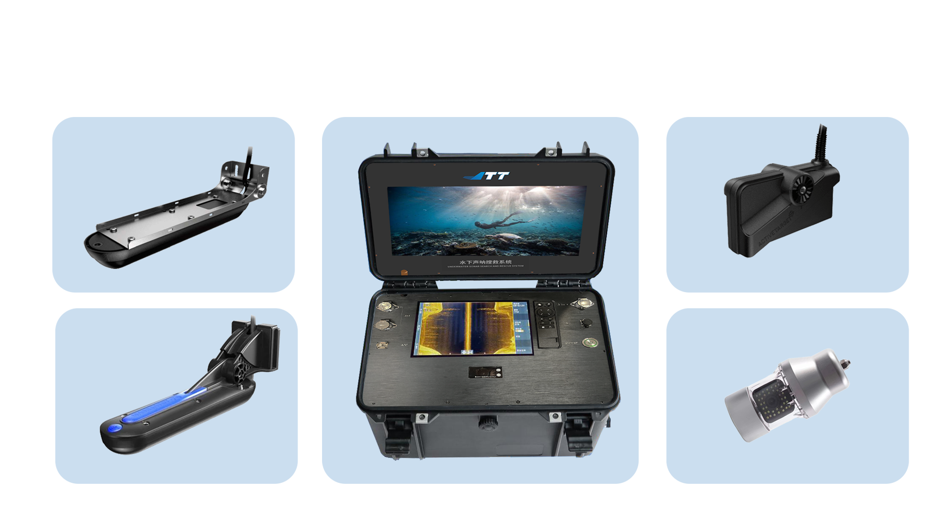水下聲吶搜救系統是一種用于在水下環境中進行定位、測距和成像的設備。它利用超聲波在水中傳播的特性來實現水下目標的探測和跟蹤。以下是水下聲吶探測系統的簡要介紹: