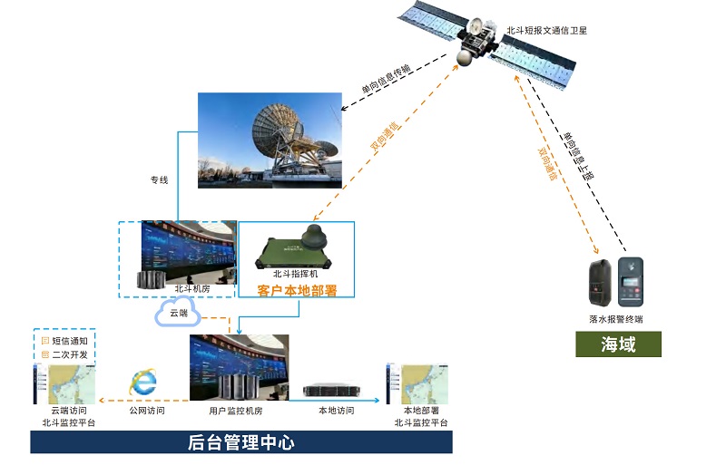 海洋水上作業(yè)中,人員落水問題時有發(fā)生,過去救援人員很難獲取落水人員呼救信息、確定落水人員位置、事故發(fā)生時間以及事態(tài)嚴(yán)重程度,以給予最及時的救援,管理人員都對此無計可施,缺乏有效技術(shù)手段是目前海上事故救援效率低、救援難度高的重要原因。本方案基于北斗RDSS導(dǎo)航衛(wèi)星實(shí)時進(jìn)行循環(huán)定位、通信操作,通過衛(wèi)星轉(zhuǎn)發(fā)落水人員的準(zhǔn)確坐標(biāo)、時間等信息實(shí)時地告知教援中心,從而顯著提高海上救援的響應(yīng)速度和搜救成功率。