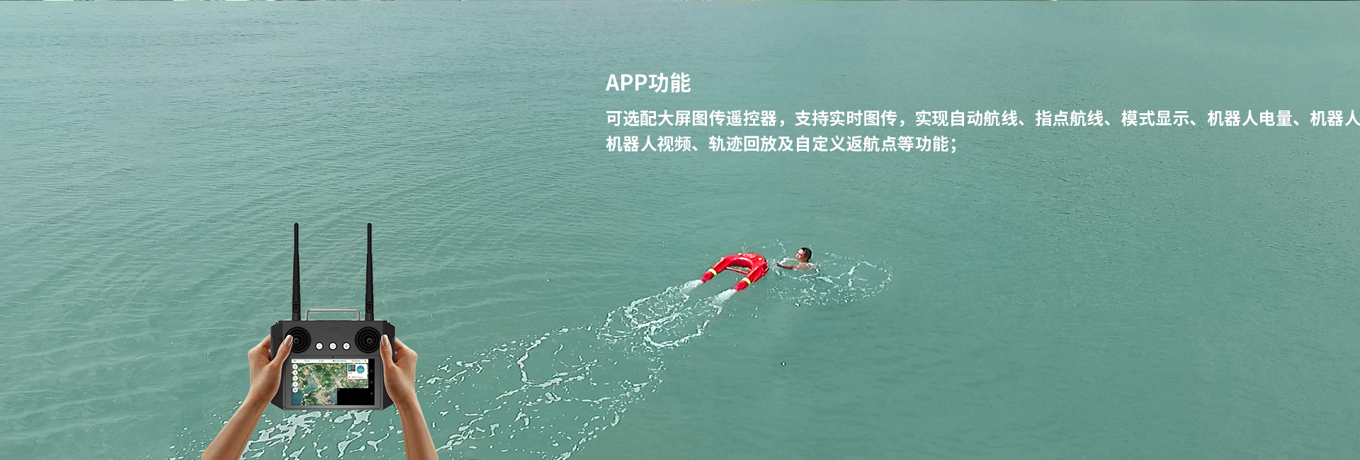 遙控本機雙操控模式:救援機器人本機配備操控鍵,被救人員在自身清醒的情況下可通過操控鍵控制救援機器人航行
