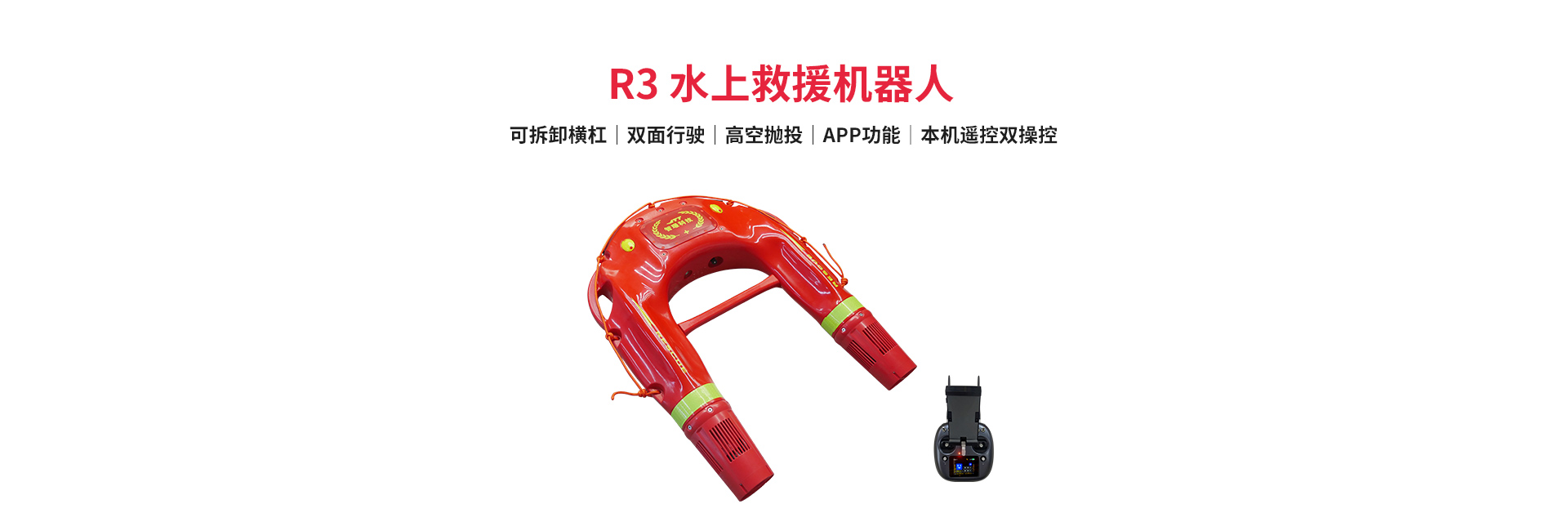 R3水上救援機器人是一款政府應急、民間各類水上救援組織的標準救援設備,專門應用于泳池、水庫、河流、海灘、游艇、輪渡等場景中的落水救援。相比R2水上救援機器人,R3具備遙控/本機控制模式,支持正反雙面行駛,支持實時圖傳功能、30米高空拋投,速度為9.2m/s,續航時間高達98分鐘。機器人配備抓握橫桿,便于被困人員抓握到機器人,可同時拖拽4人。遇到險情時,可迅速出警,為救援搶險贏得寶貴時間,降低救援風險。